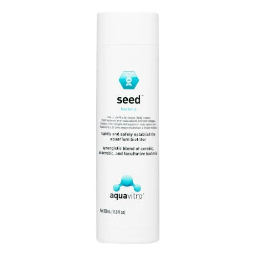 Aquavitro seed rapidly and safely establishes the aquarium biofilter and helps prevent “New Tank Syndrome”. seed has bacteria specifically developed for hardiness and their ability to adapt to a wide variety of environmental conditions. This unique, synergistic blend of bacteria is found in no other product. Great for use in both freshwater and saltwater aquariums.
