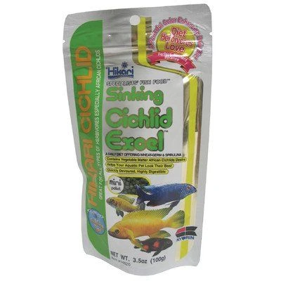 Hikari Cichlid Excel is specially formulated for herbivorous (plant eating) fish. This formula combines wheat-germ, spirulina and vitamins and minerals to provide a diet that is extremely nutritious, easy to digest, provides powerful color enhancement and promotes outstanding growth characteristics. This superior diet can be fed to African Cichlids and many types of plant eating tropical fish with excellent results. Sinking pellets will not cloud the water, reducing water quality problems. Rapidly enhances the natural colors of your fish. Contains stabilized Vitamin-C which promotes resistance to stress and infectious disease, and promotes a long, healthy life. High Vitamin-E content promotes long-term health and vigor. Great for larger tropical fish too!