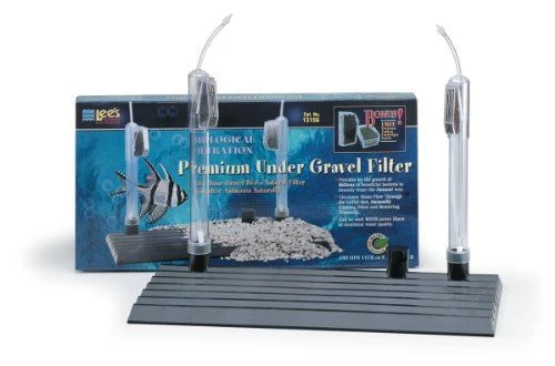 Lee’s Premium Under Gravel Filters clean your freshwater or saltwater aquarium through a biological filtering process which supports the growth of beneficial bacteria. This allows natural detoxification and maintains proper ammonia balance by circulating water flow through the gravel bed. They also include 2 Premium Carbon Cartridges, coarse Discard-a-Stones, a fish-saver elbow, and a telescoping ring to easily adjust the uplift tube height. It is constructed with a strong multi-level UGF plate design with molded gravel guards to prevent gravel from entering the uplift tube. In order to maximize water quality, Premium Under Gravel Filters work entirely with a power filter.