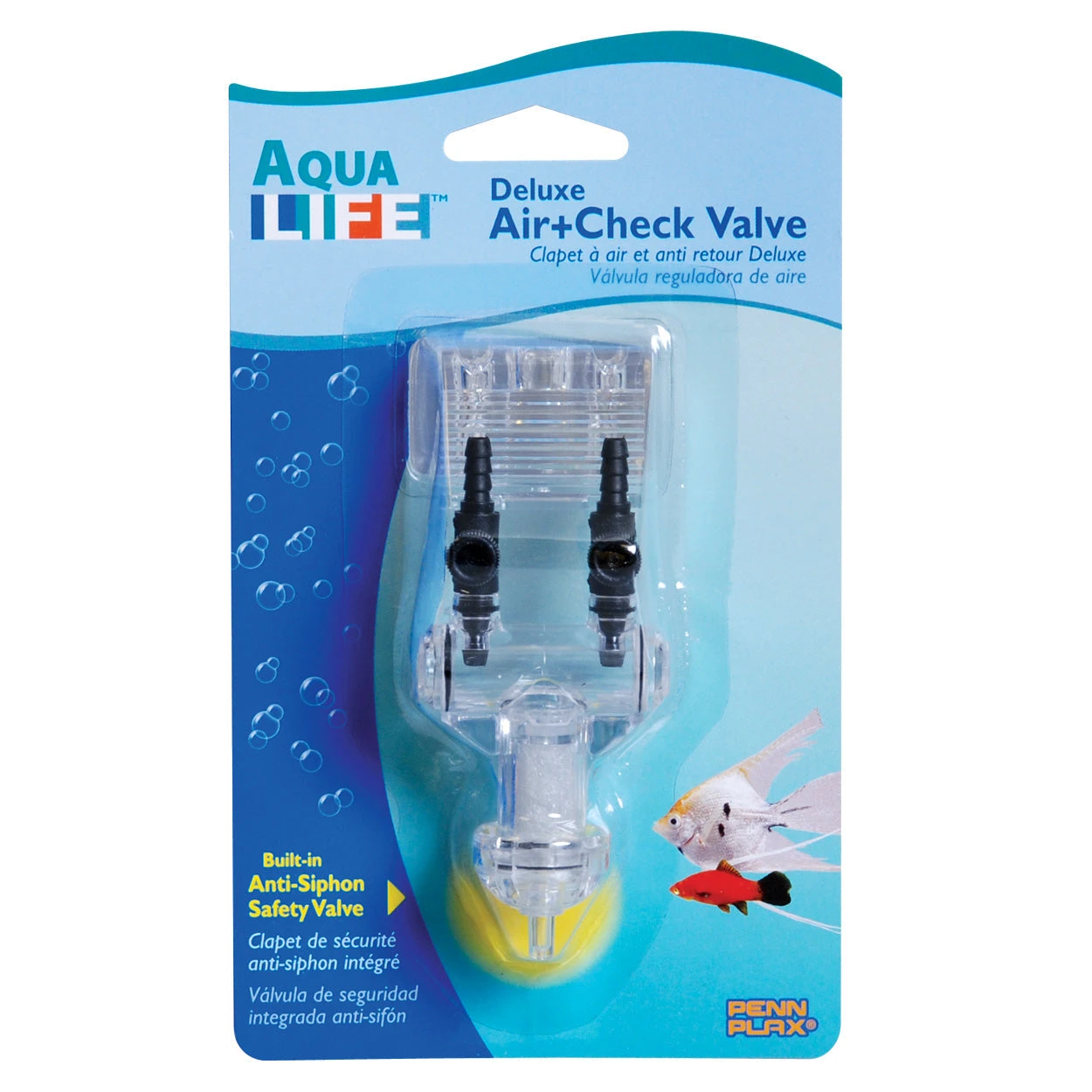 The 2 outlet Aqua Life Deluxe Air+Check Valve allows you to operate up to two air-powered accessories or devices using a single air pump. It features a built-in anti-siphon check valve that protects your air pump against water damage, and allows you to independently regulate the air output for each connected accessory. A convenient hang-on design fits most standard aquariums, and an integrated air filter supplies clean air to your aquarium. Perfect for accurate and adjustable control of air stones and diffusers, aerating ornaments, and more!