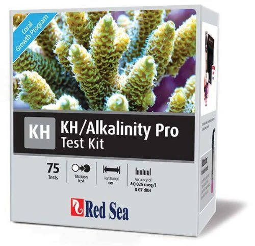 Red Sea’s KH/Alkalinity Pro Test Kit is an advanced titration test, measuring the level of buffers if your reef aquarium to an exceptionally high resolution of +/- 0.025 meq/l (0.07 dKH). This test kit enables the accurate dosing of Red Sea’s Reef Foundation B supplement (Buffer) which is part of the complete Red Sea Reef Care program. This kit includes durable, chemical resistant plastic case and analytical grade glass vials. The high precision titrator included inside is easy-to-use single handedly. This kit includes materials for 75 test and a 100 ml bottle of Reef foundation B.
