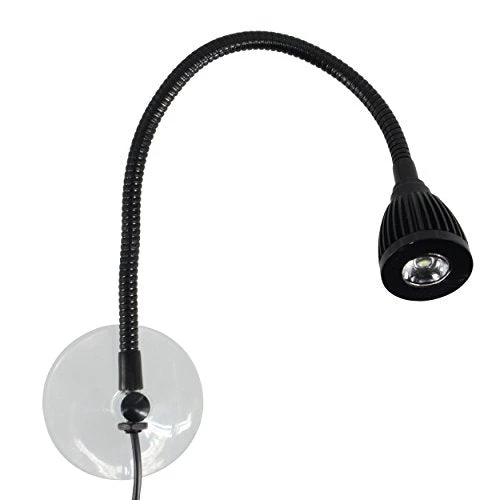 The 3-Watt High-Intensity Seapora Gooseneck Mini Spot LED Light with heavy duty suction cup mount is small, sleek and compact making it perfect for smaller tanks where space is an issue. The warm daylight 6,700K output provides a shimmering natural sunlight effect and is perfect for use with most glass or acrylic flat-sided desktop aquaria, nano tanks and fish bowls and the custom-tuned polycarbonate optic focuses the brilliant light down into the aquarium for maximum coverage and depth penetration. The 10-inch gooseneck allows aquarists to choose where specifically they want the light to be aimed and can also useful as an accent light on larger aquariums and terrariums and featires an extra durable neoprene coating to resist against corrosion. Includes low-voltage UL-listed AC adapter.